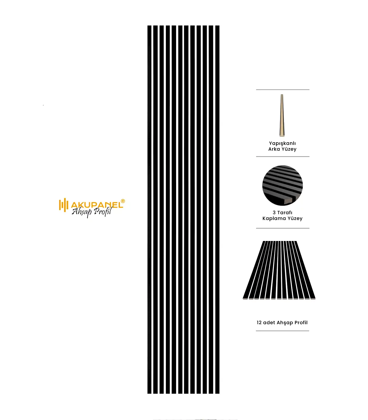 Akupanel 240cm Siyah Rengi Ahşap Profil