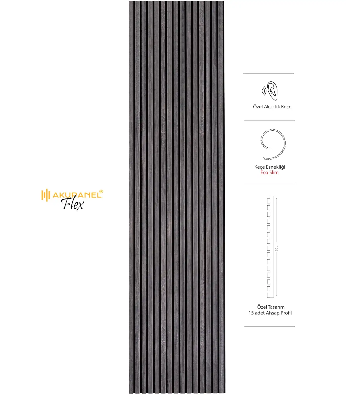 Akupanel FLEX 60×245 cm Siyah Akustik Duvar Paneli