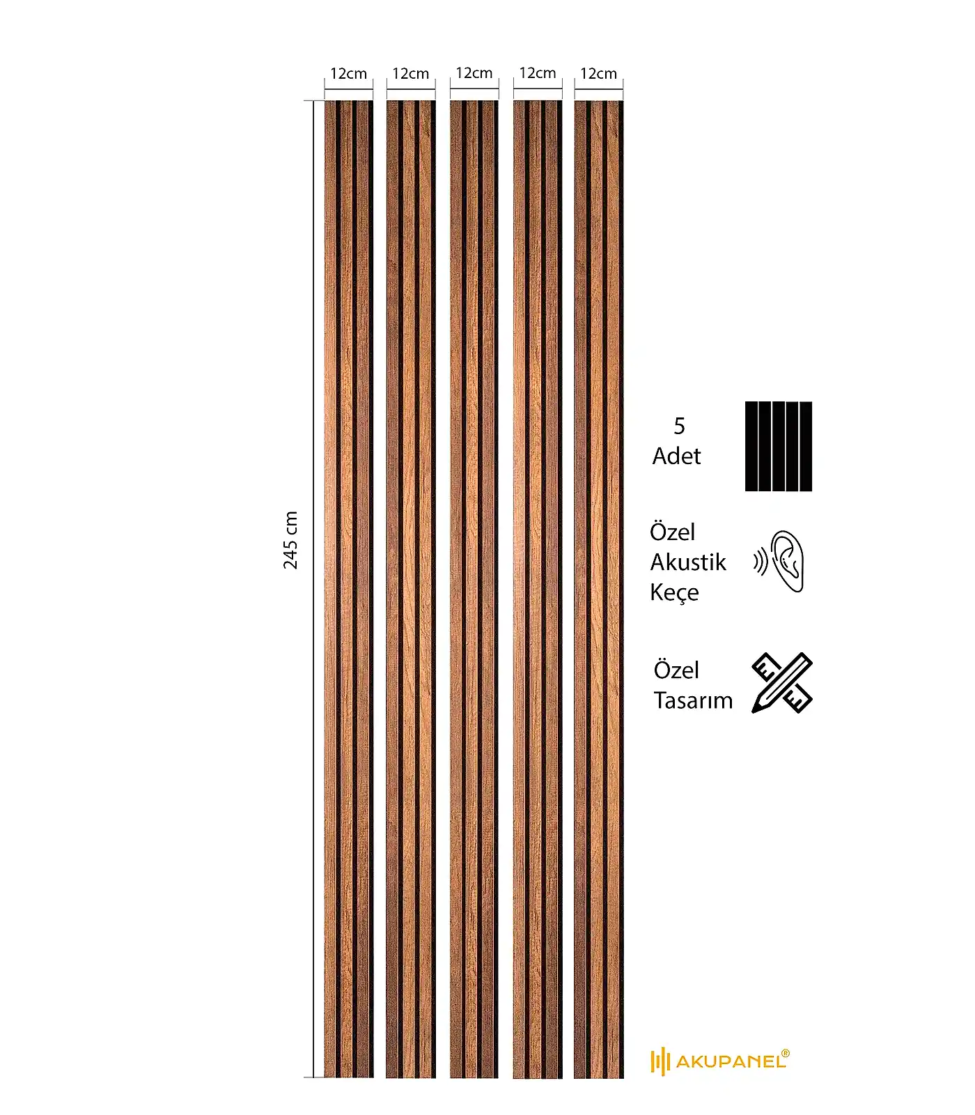 Akupanel MOD 12×245 cm Ceviz Akustik Duvar Paneli (5 Adet)