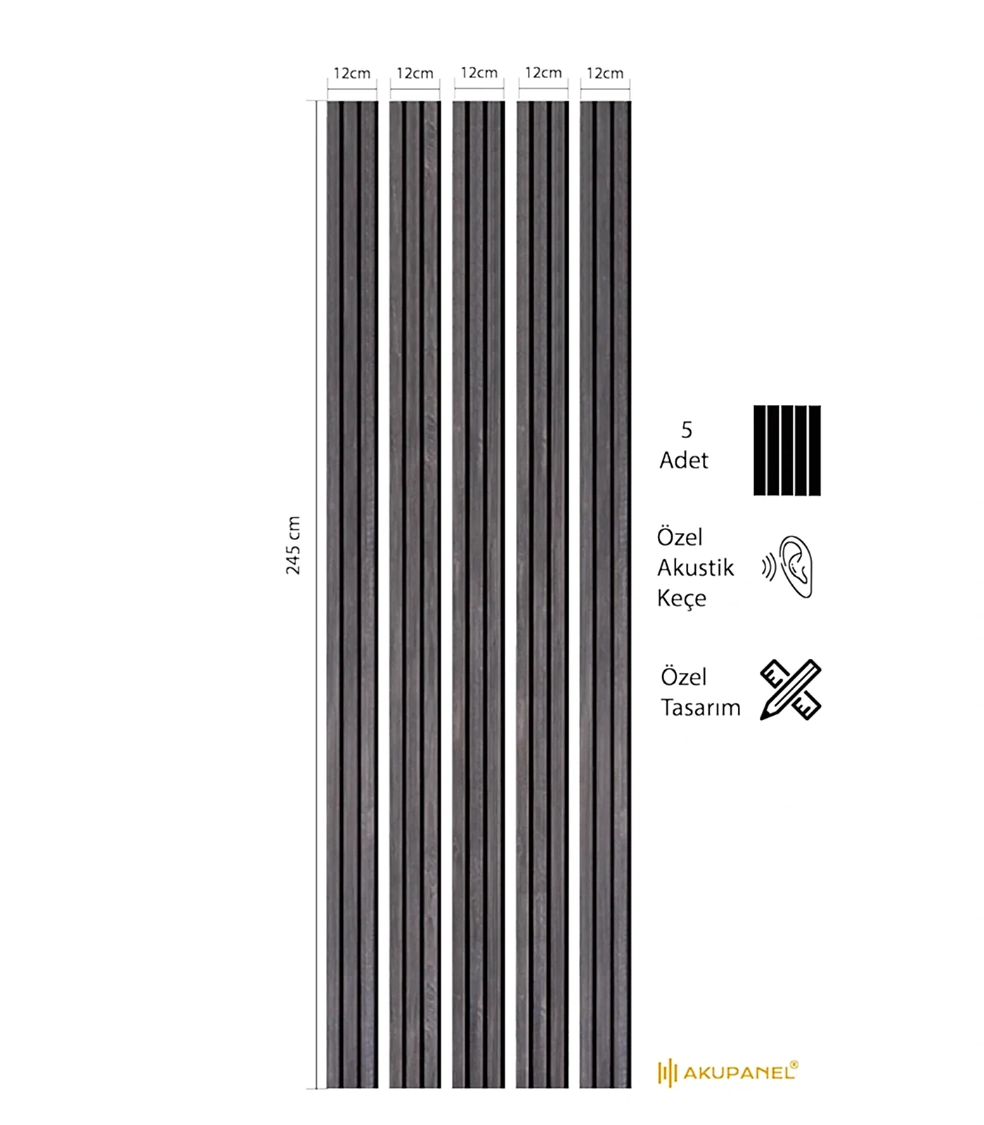 Akupanel MOD 12×245 cm Siyah Akustik Duvar Paneli (5 Adet)