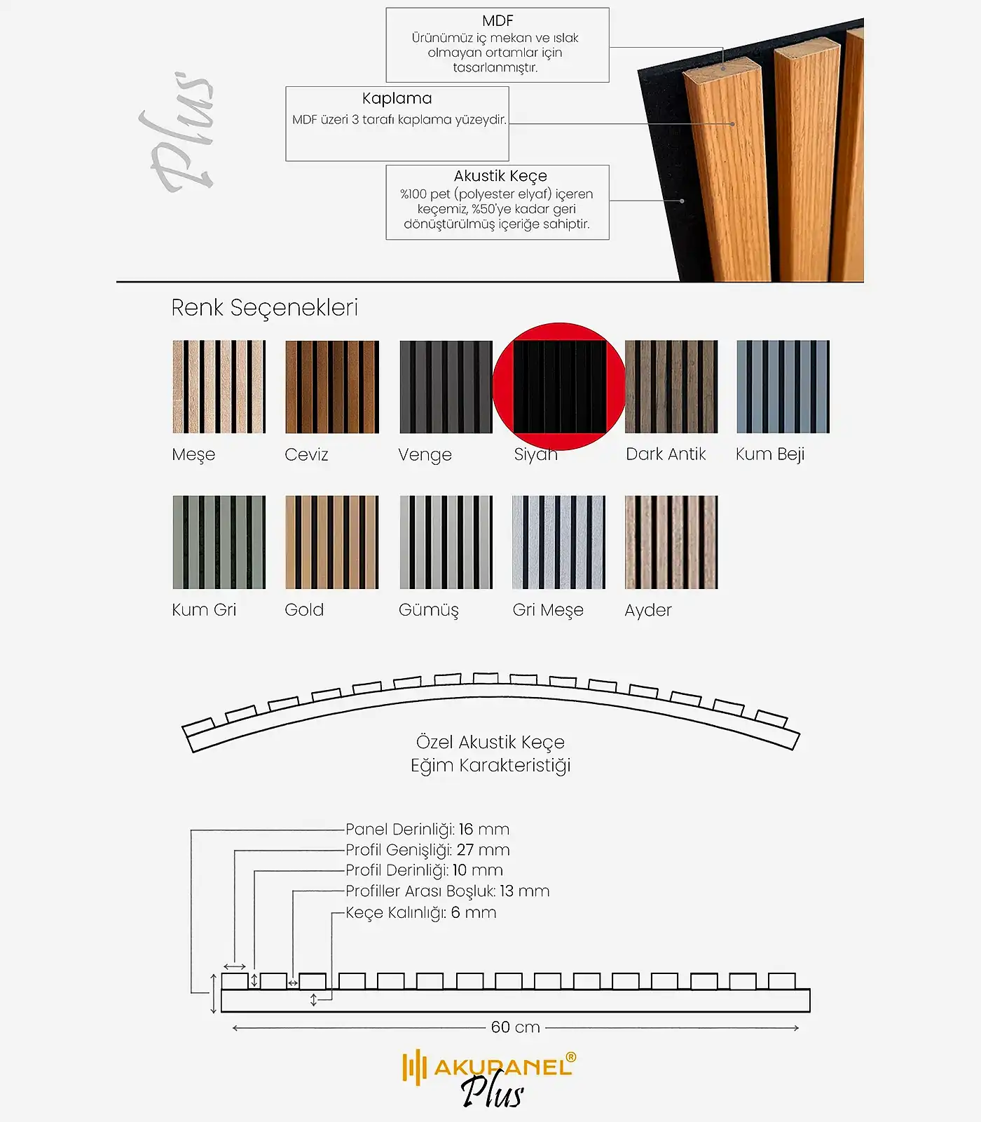 Yeni Akupanel Plus Serisi ile yaşam alanınıza renk katın. MDF üzeri 3 tarafı kaplama yüzeyi ile birlikte plus serisi ile tanışın.