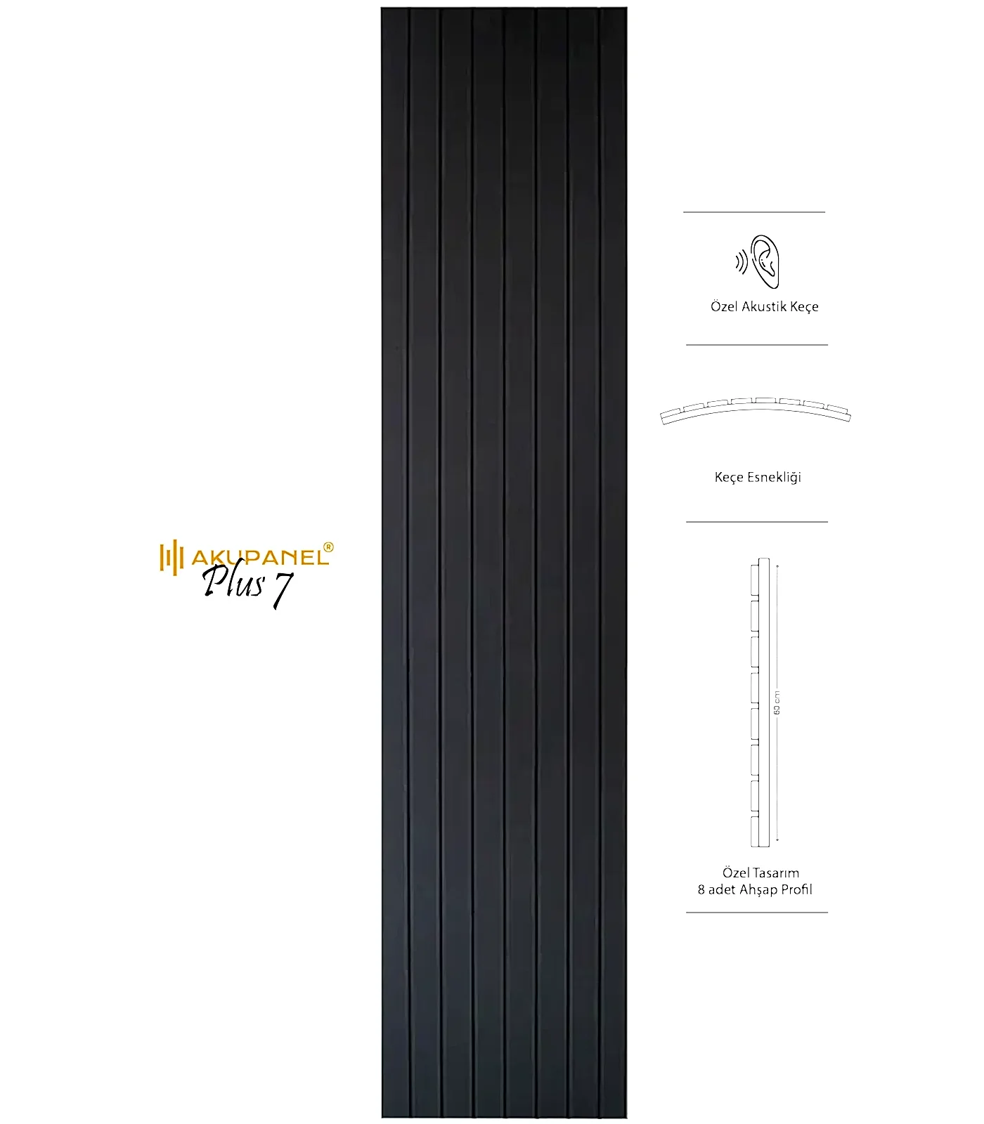 Akupanel PLUS7 60×245 cm Siyah Akustik Duvar Paneli
