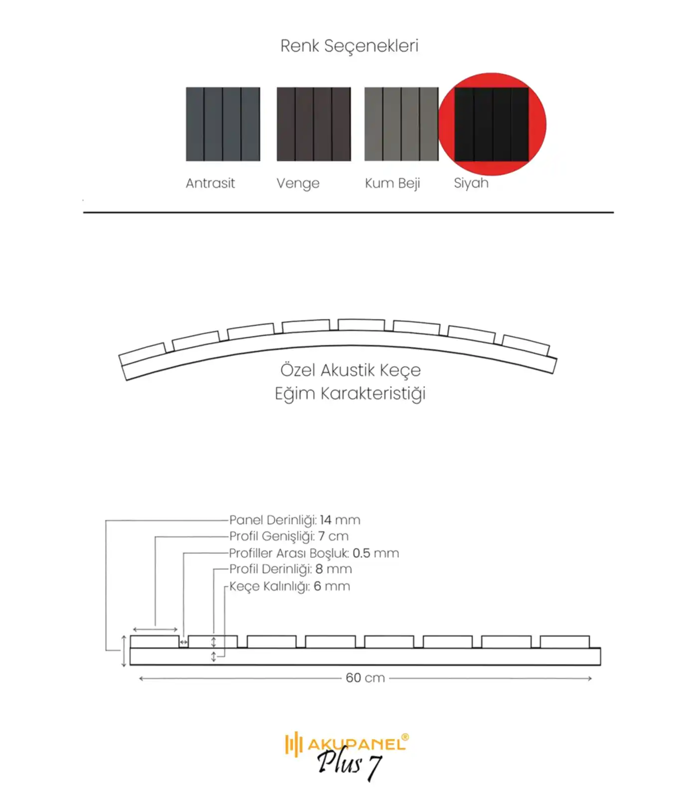 Akupanel, akustik ve dekorasyonu bir araya getiren inovasyon ürünüdür. Bir akupanel ölçülerimiz 60×245 cm dir. Bir akupanel ahşap duvar panelinde 8 adet ahşap profil bulunmaktadır. Ahşap duvar profilleri özel olarak üretilmiş sertifikalı akustik keçe üzerine montajı yapılmıştır. Akupanel’in derinliği 16 mm dir. Oldukça hafif ve eğimli duvarları saracak şekilde esnek bir yapıya sahiptir. Kendin yap deneyimi ile sadece 3 adımda duvara kolayca montajını yapabilirsiniz.